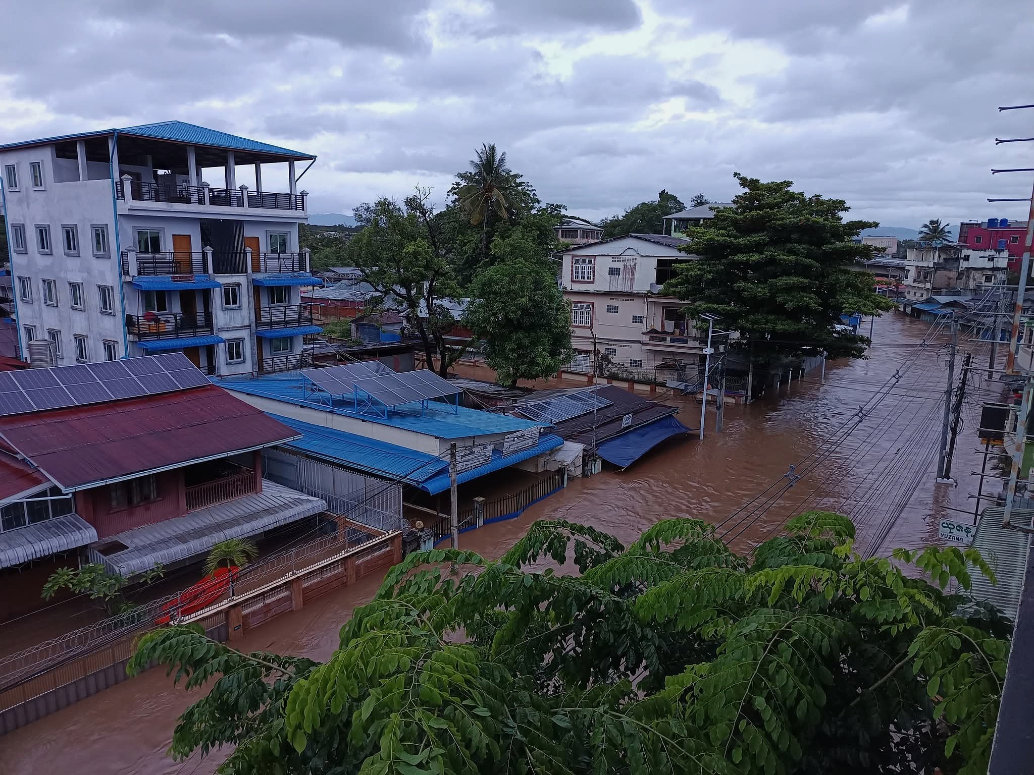 မယ်ဆိုင်ချောင်းရေဟာ တာချီလိတ်မြို့မှာ မြို့ရဲ့ စိုးရိမ်ရေမှတ်အထက်သို့ ပေဝက်ကျော် ကျော်လွန်နေပြီး နောက် ၁ ရက်အတွင်း ပေဝက်ခန့် မြင့်တက်လာနိုင်တဲ့အတွက် မြို့ရဲ့ စိုးရိမ်ရေမှတ်အထက်မှာ ဆက်လက်တည်ရှိနေပါတယ်။